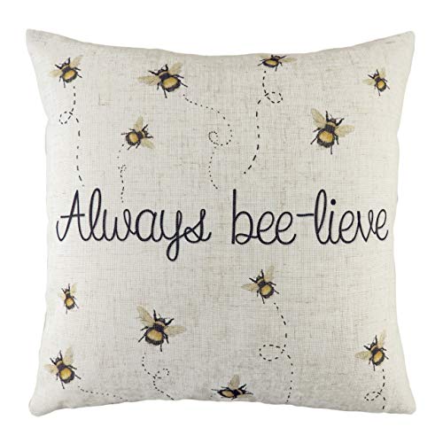 Evans Litchfield Bee Happy Repeat polyester fylld kudde, vit, 43 x 43 cm