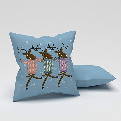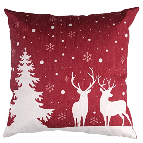 Tyg kudde med vit och röd jul design med rådjur och träd 43x43