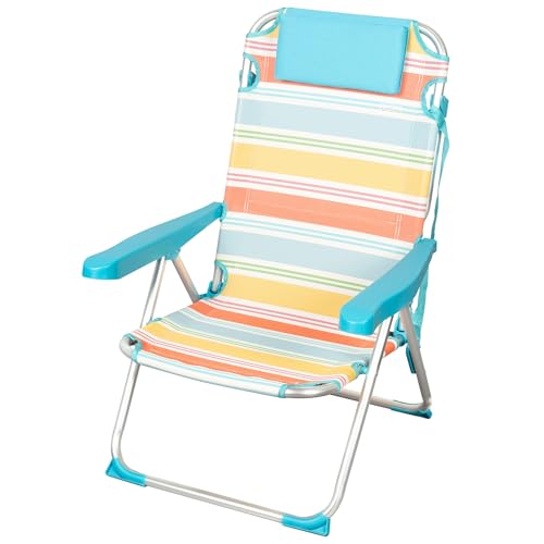 AKTIVE Hopfällbar strandstol, 48 x 60 x 90 cm, lutad i 5 lägen, flerfärgad randig aluminium och textilen, med kudde, bakficka och axelhandtag, anti-glid, modell Santorini (62421)