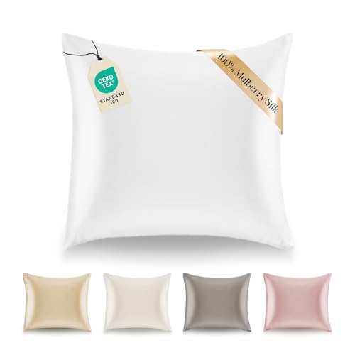 Dreamzie 1 st. örngott i silke- För Kudde 80 x 80 cm, Vit, vikt: 19 momme, 100% mullbärssilke, dubbelsidigt, silkesörngott för hår och hud, åldersförebyggande, förebygger vägglöss