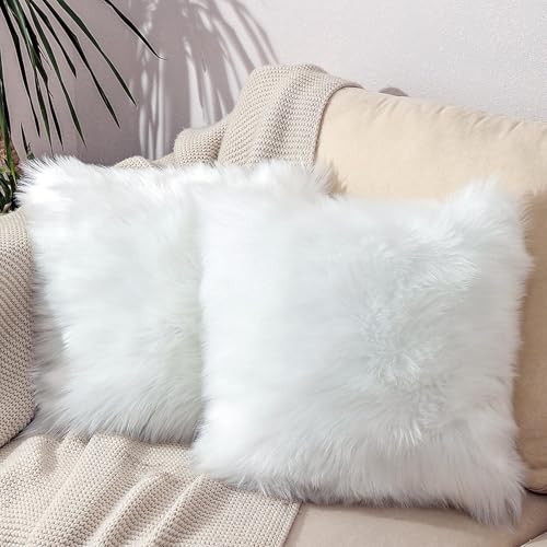 linmopm inget inlägg fuskpäls fårskinn prydnadskudde överdrag 18 x 18 set med 2 merinoull stil supermjuk fluffig kudde luddig kuddöverdrag ny lyxig serie för vardagsrum bäddsoffa heminredning (vit)