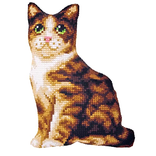 Orchidea Korsstygn katt kudde kit, 37 x 47 cm