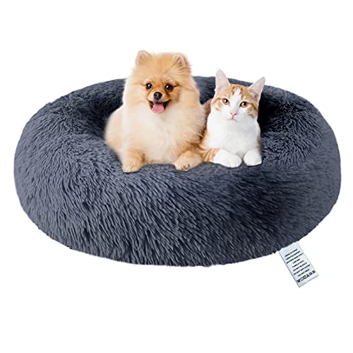 fireowl Lugnande hundbädd munk kattbädd anti-ångest hundbädd mysig husdjur hundbädd plysch gosig mjuk valp soffa katt kudde maskintvättbar hund bäddsoffa (Ø 70 cm ytterdiameter, grå)