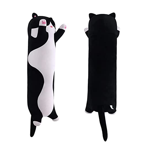 SNOWOLF Mjuk Katt Kudde Plysch Lång Sömnskytte Bomull Fylld Kattunge Söt Plysch Docka Leksak Present till Barn Flickvän (svart) 110 cm)