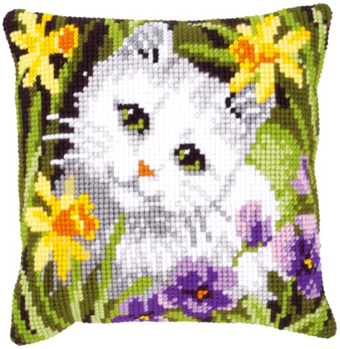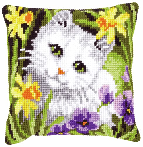 Vervaco Korsstygnsset: Kudde: Vit katt i påskliljor, NA, 40 x 40 cm