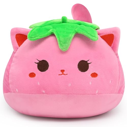 MUFEIRUO Jordgubbe gosedjur katt, 40 cm jordgubbe rosa katt, plyschdjur, kudde, Kawaii jordgubbe katt, gosedjur, mjukt mjukisdjur, katt, kudde, presenter för barn