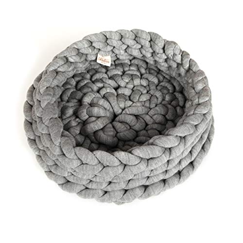Homemania YU1801_Grey Husdjursbädd, Nest House, Kudde, Barnsäng, Hund, Katt, Husdjur, Grå, Akrylbomullsgarn, Rep, 50x50x15 cm