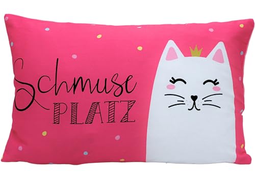 Dekohjälden24 prydnadskudde – gosig kudde med katt/dekorativ kudde – huvudkudde – prydnadsyta – L/B/H ca. 40 x 13 x 23 cm, 100% bomull.