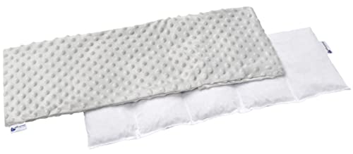 Medi Partners Cherry Pit mikrovågssäker kudde 60x20cm storkornskudde värme 800g 5 kammare avtagbart överdrag - Cherry Pit för nacke och axlar, kylterapi (Grå Minky)
