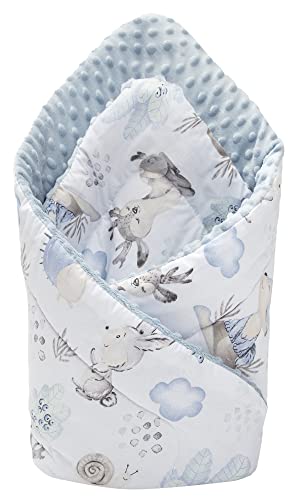 Medi Partners Inslagbar filt plug-in kudde Minky 100% bomull 75 x 75 cm sovsäck dubbelsidig mjuk året runt multifunktionell antiallergiska spädbarn (hisch och igelkott med ljusblå minky)