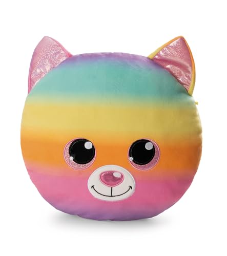 Kudde, Glubschis-katten Miss Mellie, 32 x 32 cm, flerfärgad, fluffig, gosig gosedjurskudde för pojkar, flickor, spädbarn och alla som älskar mjukisdjur, perfekt för hem, dagis eller på resor, 62208