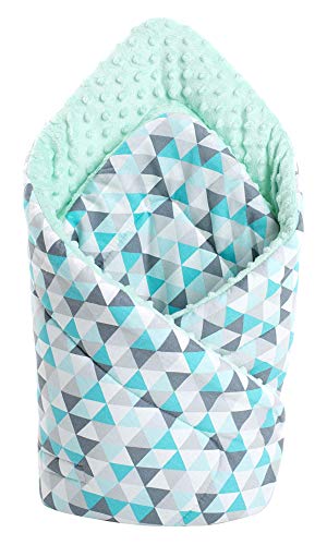 Medi Partners Inslagbar filt plug-in kudde Minky 100% bomull 75 x 75 cm sovsäck dubbelsidig mjuk året runt multifunktionell antiallergiska spädbarn (mynta trianglar mynta minzer minky)