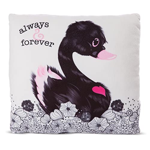NICI Gosedjurskudde med Svart Love Svan 30x30 cm, Fyrkant I Gosig Svan Kudde för Pojkar, Flickor & Spädbarn I Fluffig Plysch Leksakskudde - 48275