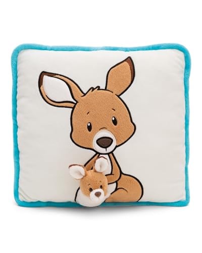 NICI kudde 30x30cm känguru med kängurubarn 7cm - brun - Fluffig mjuk gosekudde för pojkar, flickor, spädbarn och alla som älskar gosiga leksaker, perfekt för hemmet, dagis eller på språng - 61730