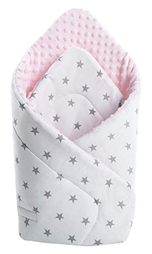 Medi Partners Inslagningsfilt plug-in kudde minky 100% bomull 75 x 75 cm babyhörna, dubbelsidig mjuk året runt, multifunktionell, antiallergiska spädbarn (stjärnor med rosa minky)