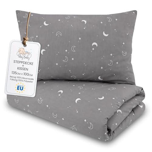 Bleu Câlin Babypaket, lätt täcke, 100 x 135 cm + fluffig kudde 40 x 60 cm för spjälsäng 70 x 140 cm - tvättbart vid 95 °C - Oeko-Tex-certifierad