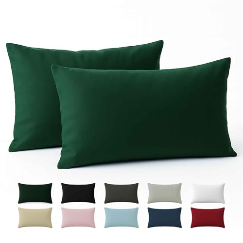 Twinzen® Örngott 30x50 cm (Set om 2) - Jersey 100% bomull 150 GSM - Grön - Örngott 30x50 cm - Kuddfodral med dragkedja - Oeko-Tex certifierad