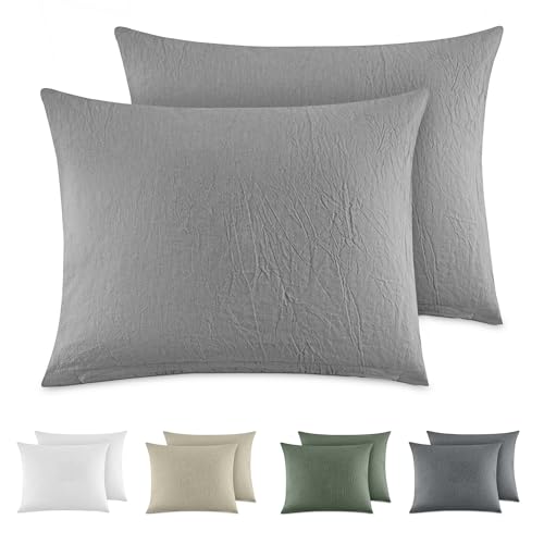 Dreamzie Örngott 30x50 Bomull (Set med 2) Örngott 100% tvättad bomullslinnelook, kuddfodral med dragkedja, mörkgrå, Oeko Tex Certified