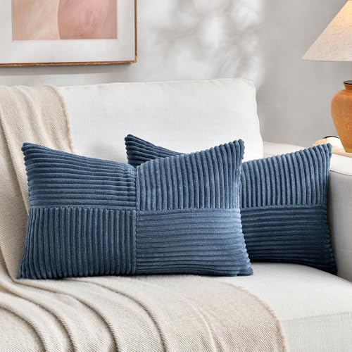 FDTERN Set med 2 boho kuddfodral för soffa, 30 x 60 cm, manchestersammet, modernt mjukt korsmönster, dekorativa kuddfodral för soffa, sovrum, blå