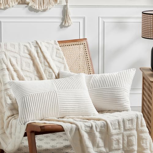 Fancy Homi 2-pack gräddvit lång ländrygg dekorativa kuddöverdrag 30 x 60 cm för bäddsoffa rustik bondgård boho heminredning, mjuk randig manchester rektangel accent kuddfodral 30 x 60 cm