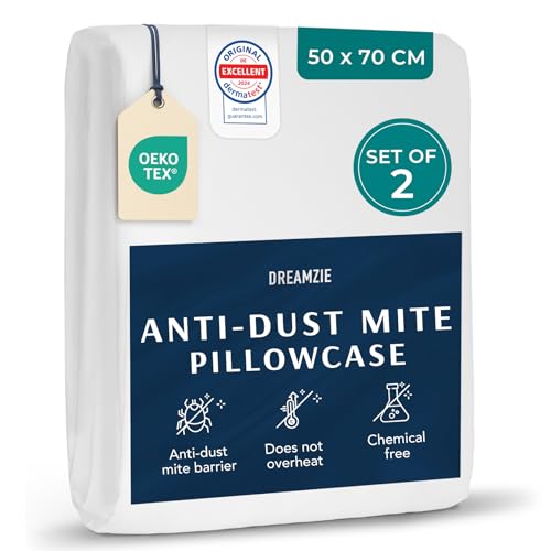 Dreamzie - Set med 2 kuddskydd 50x70 cm - Kuddfodral 50x70 för allergiker - Anti-kvalsterfodral Tvättbart 95°C