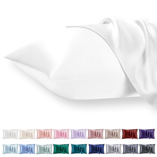 Lirex Satinörngott, 2-pack, mjukt, enfärgat kuddfodral av mikrofiber, med kuvertstängning, skrynkelfritt, bleknar inte, ventilerande (vitt, 50 x 70 cm)