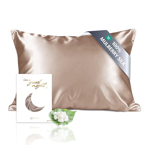 townssilk Kuddfodral med båda sidorna i 100 % äkta mullbärssilke, 19 mm, örngott som är skonsamt mot hår och hud, 50 x 90 cm, med dold dragkedja, 600 trådtäthet, ljus bronsfärg