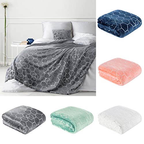Eurofirany filt vanesa filt med silverfärgat honungsvabe-mönster kuddfodral mysig filt soffilt, polyester, mörkblå, 170 x 200 cm