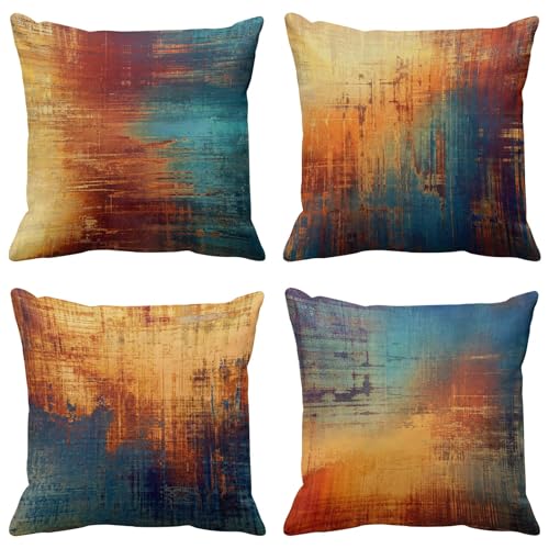 Emvency uppsättning av 4 kuddöverdrag vintage abstrakt blå och orange rörig rost målning dekorativa kuddfodral heminredning standard fyrkant 45 x 45 cm örngott