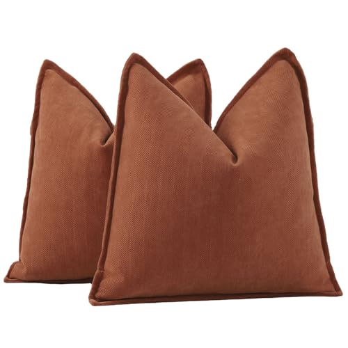 Fancy Homi 2-pack rost dekorativa kuddöverdrag 45 x 45 cm för vardagsrum bäddsoffa, mjukt randigt manchester fyrkantigt kuddfodral 45 x 45 cm, terrakotta rustik bondgård boho heminredning