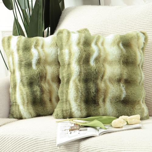 MADIZZ Set med 2 tjocka kuddfodral i plysch ull Mjukt dekorativt kuddfodral för soffa sovrum Kuddskal 45 x 45 cm Grönt