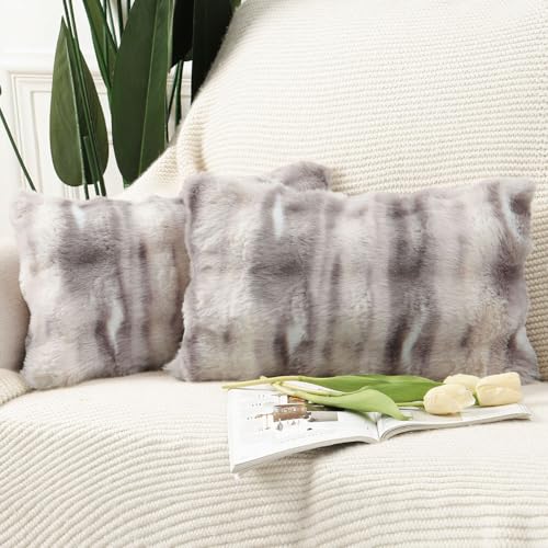 MADIZZ Set med 2 tjocka kuddfodral i plysch ull Mjukt dekorativt kuddfodral för soffa sovrum Kuddskal 30 x 50 cm Gråt Taupe