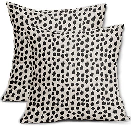 Polka prick kuddfodral 45 x 45 set med 2 svarta krämfärgade prydnadskuddar boho design penseldrag dekorativt utomhus kuddfodral fyrkantigt kuddöverdrag linne kuddfodral för hem soffa bäddsoffa