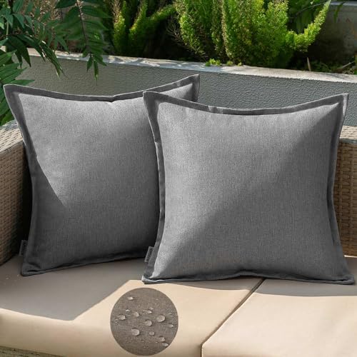 EMEMA Vattentätt utomhus kuddfodral 50 x 50 cm mjukt kuddfodral med vattenavvisande trädgårdsyta dekorativ balkong för vardagsrum sovrum set med 2 grå
