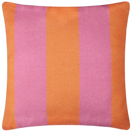 Ugn Däckrandigt vävt utomhus kuddfodral – vändbar djärv randig design, tungt tyg för långvarig användning (orange/rosa, endast skydd, 59 x 59 cm)