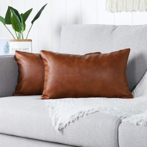 Mandioo Brunt fuskläder dekorativt ländryggskuddöverdrag 30 x 50 cm moderna enfärgade utomhus kuddfodral lyxiga prydnadskuddar för bäddsoffa 30 cm x 50 cm, paket med 2