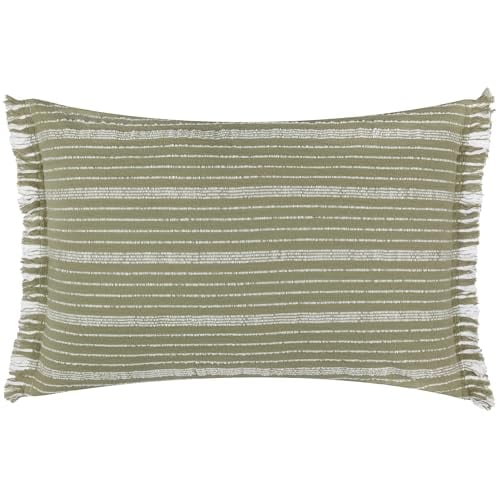 Ugn Yard Tide bomull utomhus kuddfodral – texturerat randigt trädgårdsöverdrag med volang (naturligt – endast kuddöverdrag, 60 x 40 cm)