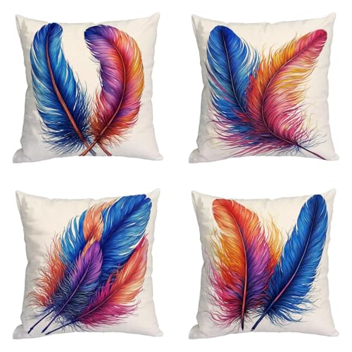 Vattentätt kuddfodral 4 st 65 x 65 cm fjäderfärg dubbelsidigt mönster vattentätt mjukt kuddfodral, sommar utomhus soffkudde, för trädgård utomhus dekor fyrkantiga kuddar B-c159