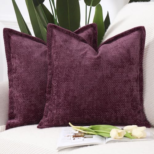 MADIZZ Set med 2 Chenille Velvet Burgundy Kuddfodral med Fläns Mjuka Boho Texturerade Kuddfodral Breddsidiga Kuddöverdrag Moderna Gårdsinredning för Sovrum Soffa 45x45 cm