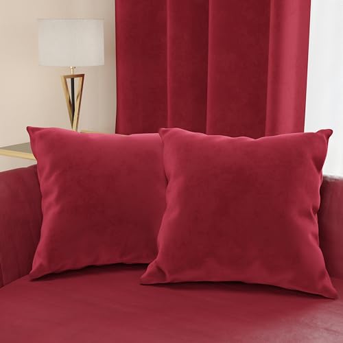 Deconovo set med 2 sammet kuddfodral soffa kuddfodral dekorativa kuddfodral mjuk design inredning sovrum vardagsrum soffkontor, 45x45 cm, vinröd