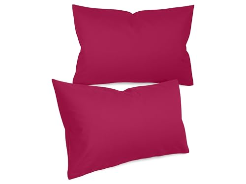 PETTI Artigiani Italiani - Set med 2 örngott, 50 x 30 cm, enfärgade kuddfodral i vinröd, 100% allergivänlig mikrofiber, tillverkad i Italien