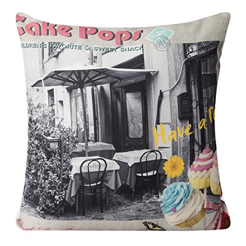 SHATCHI Hessian hem sovrum kontorsdekorationer säckväv bomull linne tryckta kuddöverdrag – renar/snögubbe/rödhake/julpudding, 40 x 40 cm