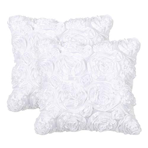 PiccoCasa Förpackning med 2 3D stereo satin rosa kuddöverdrag, dekorativa kuddöverdrag för soffa sovrum bil – 40 x 40 cm/16 x 16 tum snövit fyrkantig kuddöverdrag med dragkedja