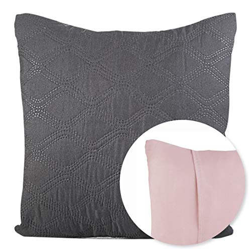 Design91 kuddöverdrag stålgrå rosa kuddöverdrag tvåfärgad överkast påslakan sovrum vardagsrum enkelt 2-pack, 40 x 40 cm, 2