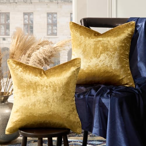 GIGIZAZA Dekorativa kuddöverdrag 40 x 40 cm, set med 2 guld fyrkantiga soffkuddfodral, sammet soffa boho kudde kuddar