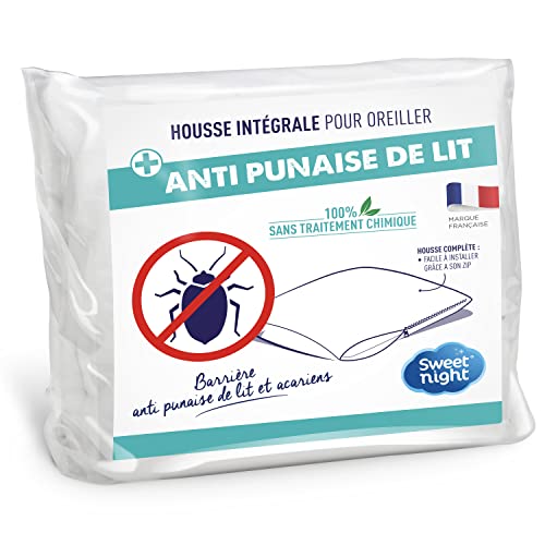 Sweetnight – kuddskydd, anti-vägglöss och anti-kvalster, helt kuddfodral med dragkedja, utan kemisk behandling, 50 x 70 cm