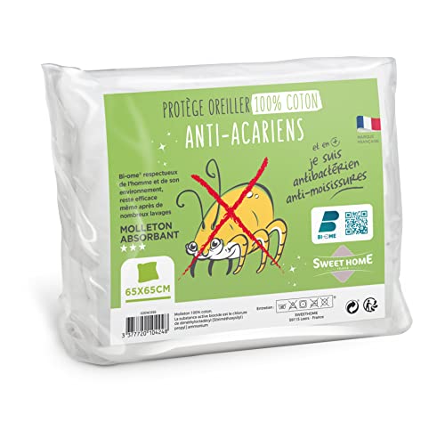 Sweetnight – kuddskydd, anti-vägglöss och anti-kvalster, helt kuddfodral med dragkedja, utan kemisk behandling, 65 x 65 cm