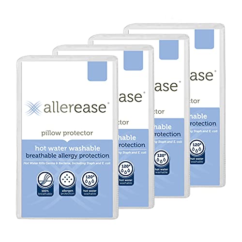 CIRCLESHOME Kuddskydd 4-pack standard dragkedja | 100 % bomull andningsbara kuddöverdrag | Skyddar mot smuts, damm och allergener | allergivänliga och tysta (standard – set med 4-20 x 26)