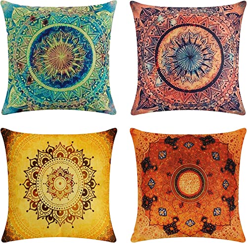 tronisky Set med 4 kuddfodral, indisk hippie bohemisk mandala blommönster dekorativa kuddskydd, bomullslinne fyrkantigt kuddöverdrag för bäddsoffa utomhus soffkuddar, 45 x 45 cm