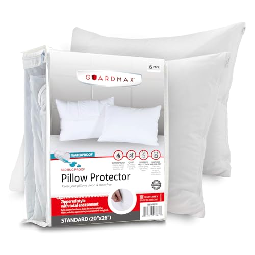 Guardmax 6-pack kuddskydd bedbugg-säkra vattentäta allergivänliga överdrag – kuddfodral med dragkedja (standard – 20 x 26 – set med 6)